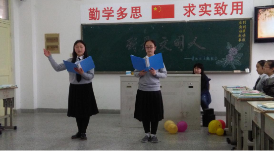 班会在史若仪、林蓓蓓带来的暖场歌曲《淋雨一直走》中徐徐拉开帷幕,班会节目异彩纷呈。孙敏,蔡洁等同学带来的女生小合唱《小文明》;林蓓蓓,胥婷婷同学带来小合唱《文明在哪里》;还有季霞、薛易非同学带来的朗诵《文明之窗》;徐欣怡,李佩璇同学带来的关于文明礼貌的脱口相声;鲁艺,蔡培等同学带来的小品《大话二游》;邵蓉蓉同学给大家介绍八礼四仪等有关文明礼貌的内容并根据内容进行知识抢答。唐艳同学的故事《六尺巷》把班会推向了高潮,故事让大家深刻体会到在矛盾面前,只要心胸宽阔,就能化干戈为玉帛。班会在手语《感恩的心》中拉下帷幕。同学们总结出中国自古以来就是礼仪之邦,文明礼貌是中华民族的优良传统,盐幼专学子更要争做文明人。