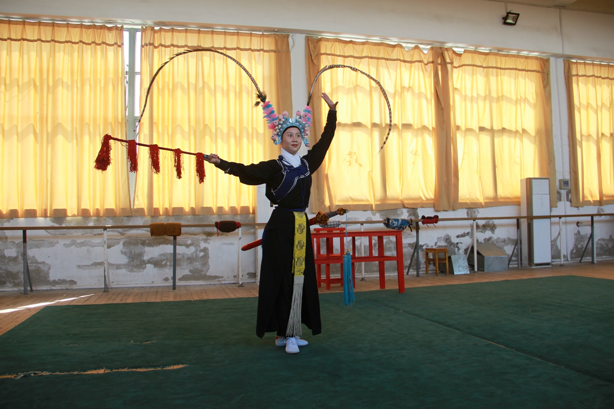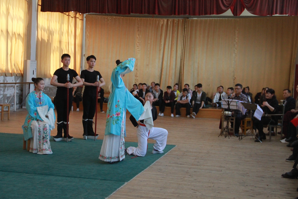 上午8:00至11:30,艺术楼四楼第十二练功房,考试安排紧锣密鼓,井然有序,汇报内容三年级有:《三岔口》片段、《罗英访贤》片段、《白水滩》片段,四年级有:《游湖》片段、《挡马》、《金水桥》。