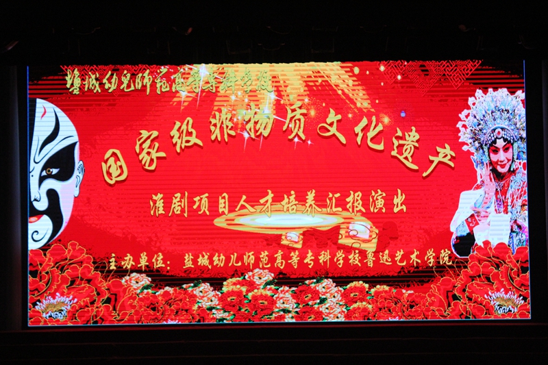 6月19日下午十五时,国家级非物质文化遗产--淮剧项目人才培养汇报演出在盐城幼儿师范高等专科学校鲁迅艺术剧院隆重举行。市领导葛启发、校领导刘毓航、姜统华等与现场嘉宾、教师、学生以及淮剧专业学生家长一起观看演出。