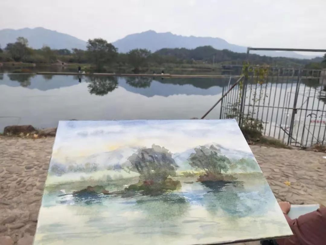 初到写生基地,老师向同学们详细介绍了周边的环境,并和同学们一起在基地周边写生,即使是小小的镇子,也是水秀山青、别具风情,同学们灵感迸发,纷纷创作出了自己满意的作品。小村庄的青砖、黑瓦、凉亭、绿树等历历在目,黄色的土墙、黑色的砖瓦带着古韵之气,仿佛静静地诉说着遥远的历史故事,红澄澄的柿子挂在树梢,从一排排高低错落的马头墙悄悄探出了头,挂在门前的红灯笼在巷子里悠悠,慢节奏的乡村生活,多了城市间难寻的惬意与安宁。叫人不自觉地停下脚步,拿起画笔和相机领略着小村庄的古朴安宁,沉浸于浓厚的文化氛围之中。面对如此美景,老师和同学们纷纷选定独特的角度进行取景,专注地挥动着手中的画笔,不一会儿一幅幅惟妙惟肖的静物画就诞生了。走出村庄,翠绿的树林,潺潺的流水,奇形怪状的山.....如诗的风景让人流连忘返。同学们尝试用各种不同的形式手法,从不同的视角细心描绘着,将眼前的美景化为笔下一幅幅美丽的画卷。