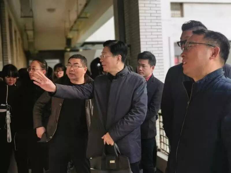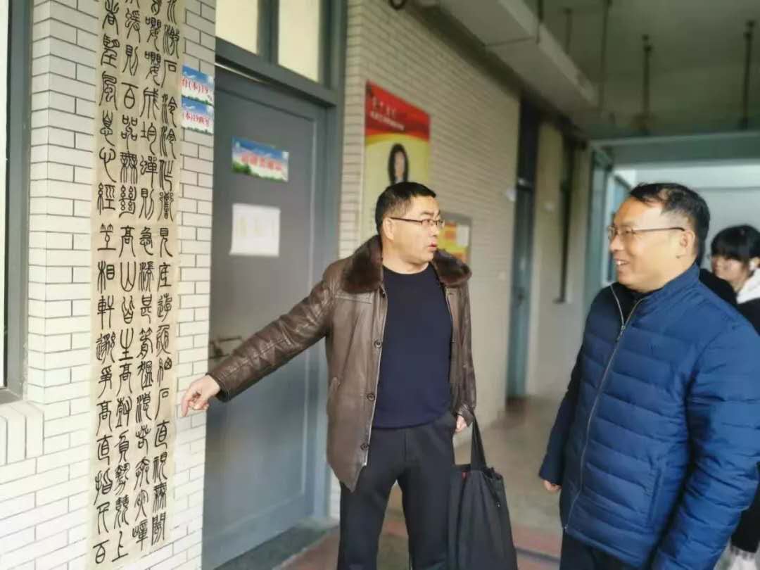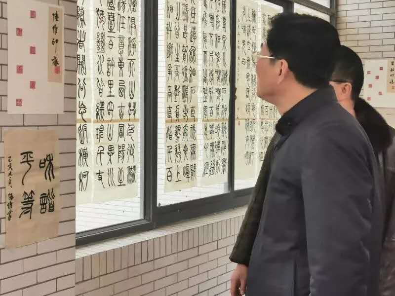 12月12日,陈长飞副校长来到鲁迅艺术学院参观期末作业展。图为陈校长正在点评指导美术书法班的书法作品。