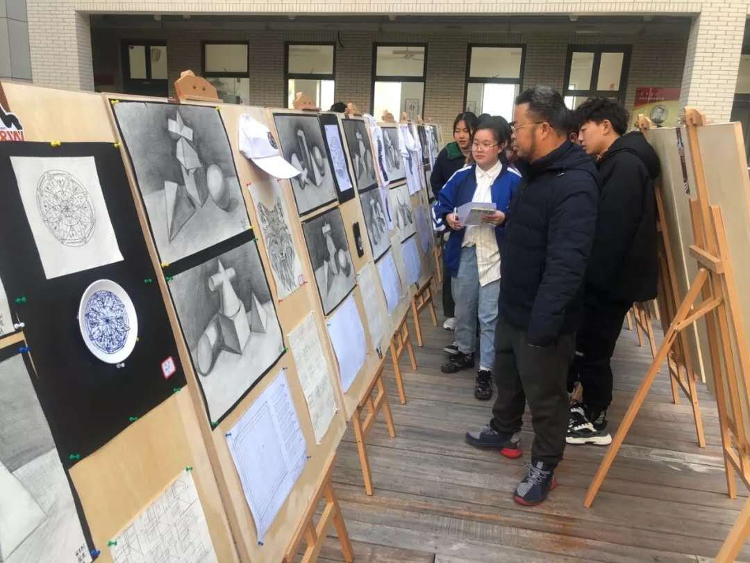 学院每天安排不同的专业课老师打分,认真细致地对每位同学的每一张作 业进行评价。