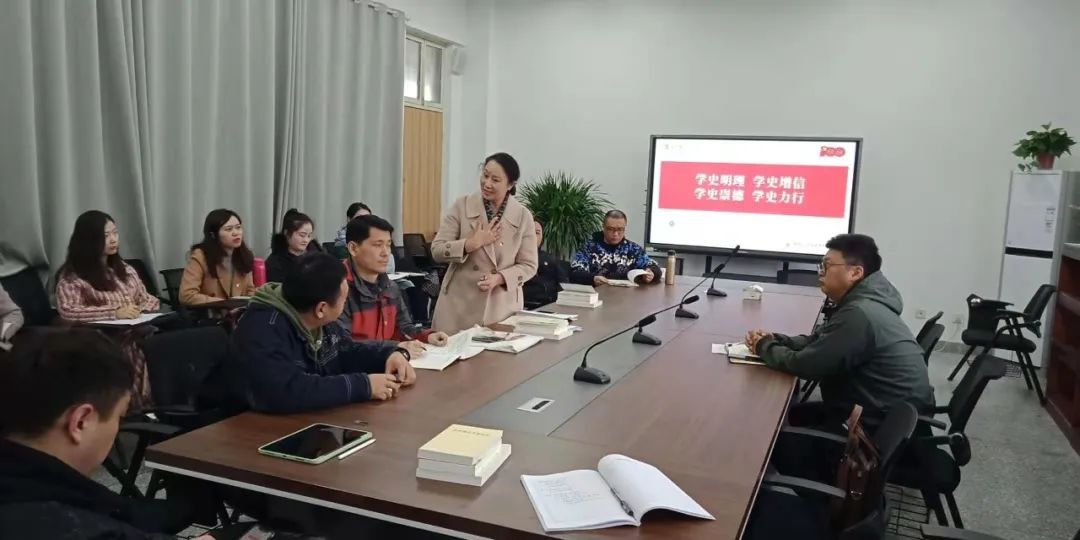 观摩活动后,学院党总支书记刘荣带领大家继续学习习近平总书记在党史学习教育动员大会上的重要讲话精神以及省委书记娄勤俭在全省、市委书记戴源在全市党史学习教育动员大会上的讲话精神,刘荣书记组织学院党员全面开展党史学习教育,他指出:党史学习教育要紧抓学史明理、学史增信、学史崇德、学史力行这条主线,以坚定信念、守住初心、制度自信为目标,结合各自的学习工作实践寻找共鸣。把党史学习教育同推进中国特色社会主义伟大事业的实践结合起来,用党的创新理论武装头脑,提高应对风险、化解各种困难的能力和水平。全力确保“十四五”时期学院高质量内涵发展开好局、起好步,坚决扛起“争当表率、争做示范、走在前列”使命担当,以优异成绩迎接建党100周年!