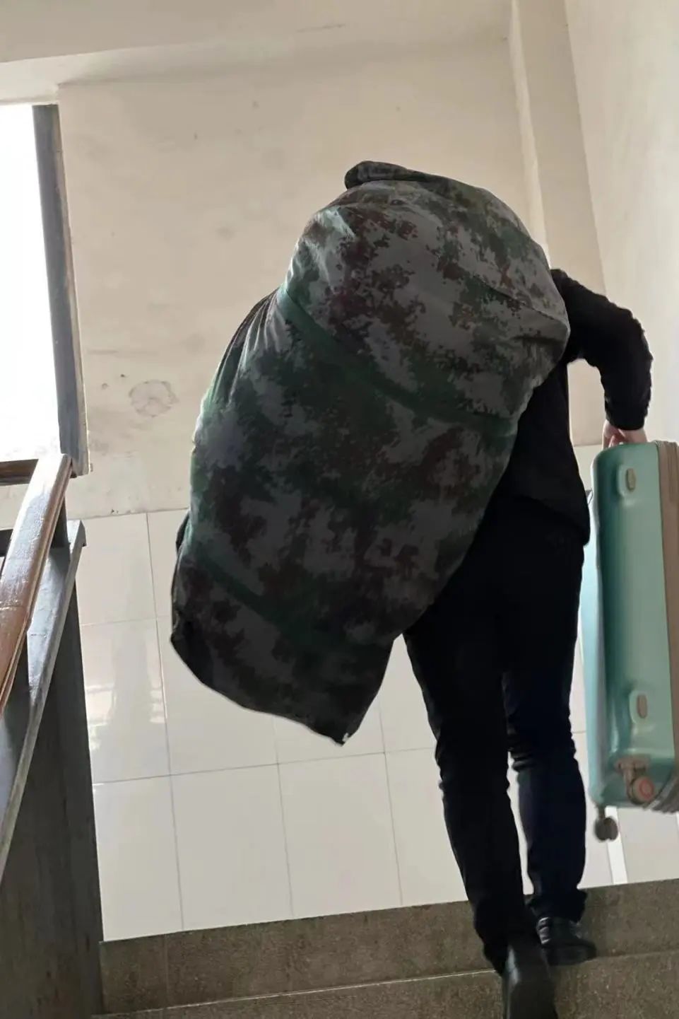 “沧海横流,方显英勇本色;时局之难,才有师道大义”。按校园封控专项要求,专车载着小周即刻出发,而院党政办车鹏程主任、李枢密老师迅速前往女生宿舍,一边和小周联系,一边打包小周被褥、洗漱用品和衣物,得知小周的眼镜前两天意外损坏,妈妈寄来换季的衣物和新的眼镜已经寄到,又赶忙前往学校快递站消杀后一并取来。经历南北校区一系列取牌、问询、测温、扫码、登记,放行等程序,终于来到南校区隔离宿舍————6号楼5楼,车鹏程老师右手提着沉重的行李箱,左手托举沉甸甸的大包在肩头,待到奋力登上五楼,并不算暖和的天气,早已经是面红耳赤、汗流浃背。还没来得及喘气,又肩挑手扛把小周的行李铺盖送到6516。车老师是院党政办主任,除了上课,每天统计数据、上交报表……是被重袱压弯了腰,还是繁重的工作让他费神又劳心?但他总是微笑着。“哪有什么岁月静好,不过是有人替你负重前行” ——一抹无声的背影像极了父亲,为孩子遮风挡雨,撑起了一方天地。