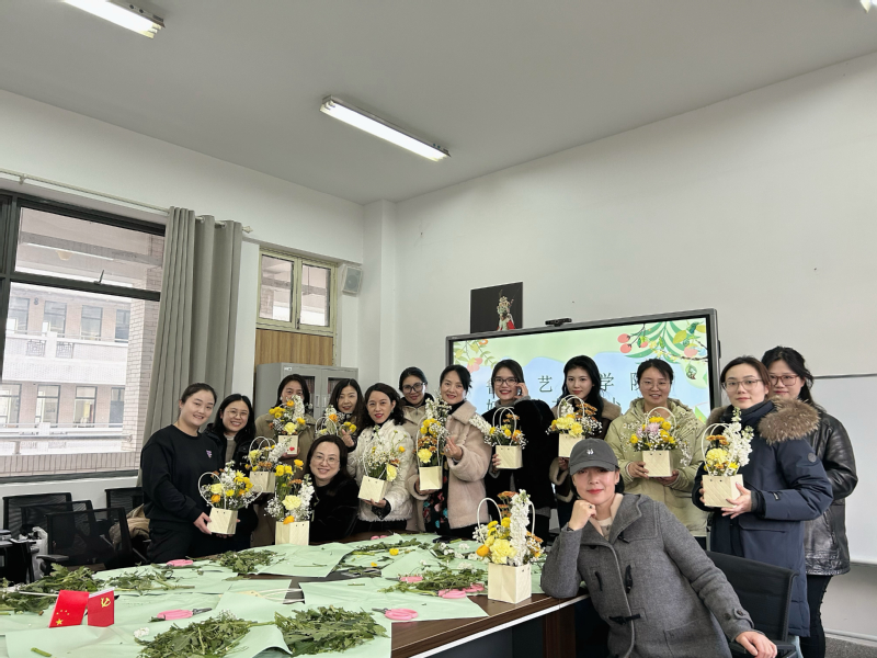 月7日下午,总支书记陈德田、院长马骥等院领导与全体女教师欢聚于学院“党员之家”,共同参与花艺沙龙活动。会议桌上摆满了各式花材,康乃馨、洋牡丹、紫罗兰、小雏菊、满天星……芳香扑鼻,美不胜收。