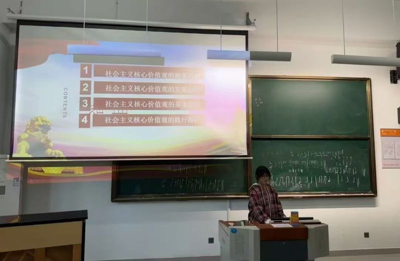 陈雅雯同学细讲解了社会主义核心价值观的科学内涵,并结合具体的事例,让广大团员和入团积极分子们对社会主义核心价值观的三个层面的内容了然于心;并结合张桂梅的先进事迹,讲述了如何在新时代新征程中践行社会主义核心价值观。