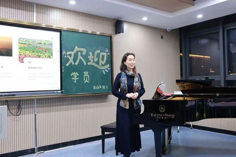 移步至宽敞明亮的音乐教室,主课老师首先致辞,表达了对学员的欢迎和期待,介绍了银龄学习分中心的前期准备工作,声乐班的教学理念、课程设置和师资力量等。接下来班主任进行了自我介绍,并邀请声乐班班委会集体亮相。