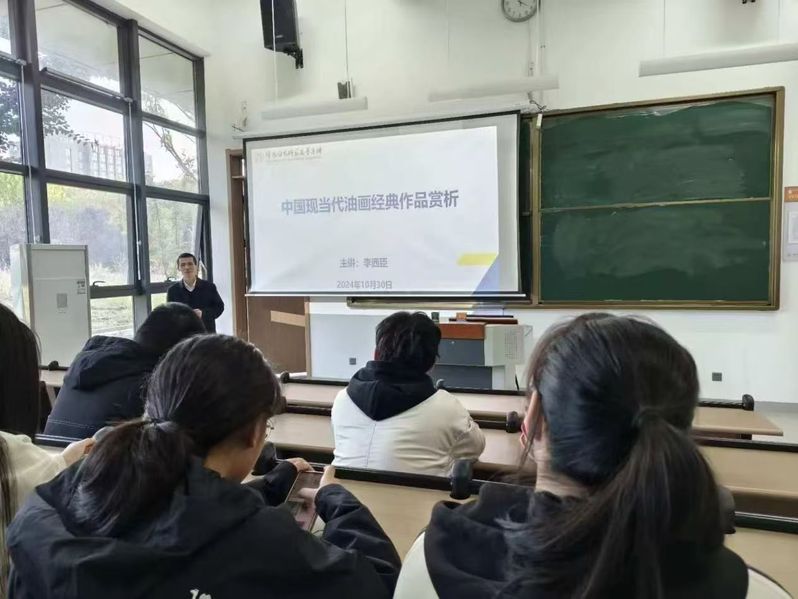 10月30日下午,李西臣教授在艺术中心开设《中国现当代油画经典作品赏析》主题讲座。美术类专业师生参加讲座。