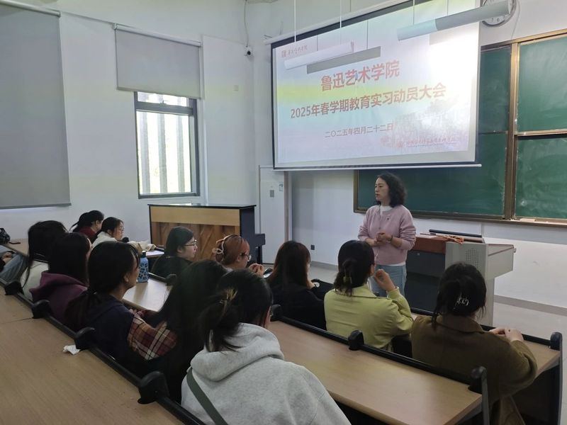 根据学校美术教育、音乐教育专业人才培养方案,美术教育21、音乐教育21、美术教育(高)2201班级本学期需到小学进行教育实习活动,为扎实推进师范生教育实习工作顺利开展,明确实习目标与任务,激发学生实践热情,鲁迅艺术学院于4月22日下午召开了实习动员大会。会议由副院长叶丹主持,实习指导老师以及实习学生出席了本次会议。