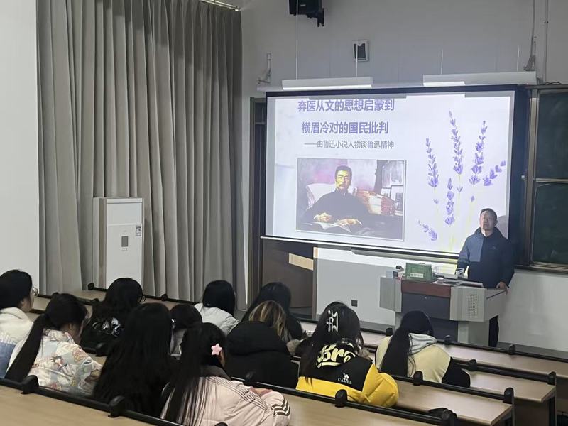 讲座开始,吴老师引用鲁迅《自题小像》的诗句“寄意寒星荃不察,我以我血荐轩辕”导入,总体概括鲁迅立志奉献华夏的毅然决心和满腔忠诚。